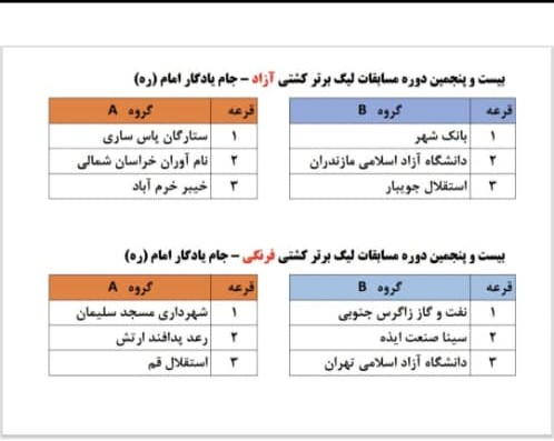 همچنین تیم سینا صنعت ایذه در گروه B این مسابقات باید به مصاف نفت و گاز زاگرس جنوبی و دانشگاه آزاد اسلامی مازندران برود.