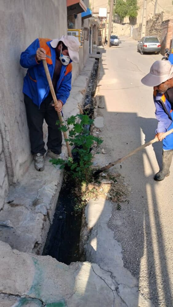 لایروبی کانالهای آب سطحی از سهراهی پشت برج جلوی بستنیفروشی اکبری تا پل نمره یک با همکاری آتشنشانی